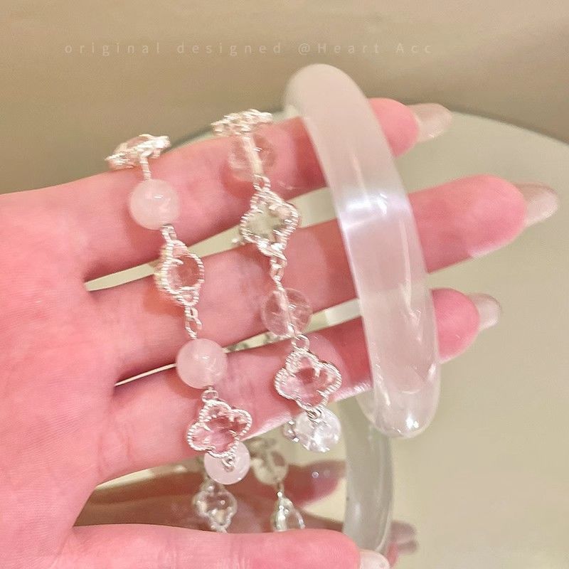 クールなクリスタルビーズブレスレット、女性用四つ葉のクローバービーズブレスレット、軽い高級感とハイエンドのブレスレット、ニッチな気質のハンドアクセサリー