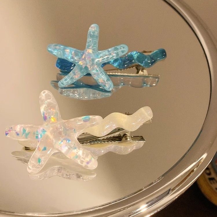 シーサイドシークレット〜ブルースターフィッシュウェーブスターヘアピンレディースファイングリッター前髪サイドヘアピンニッチヘアアクセサリー