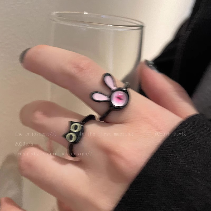 奇妙な黒い子猫が指輪を開いている女性のデザインカップルの親友の食事の指輪の気質が指輪を飾っている