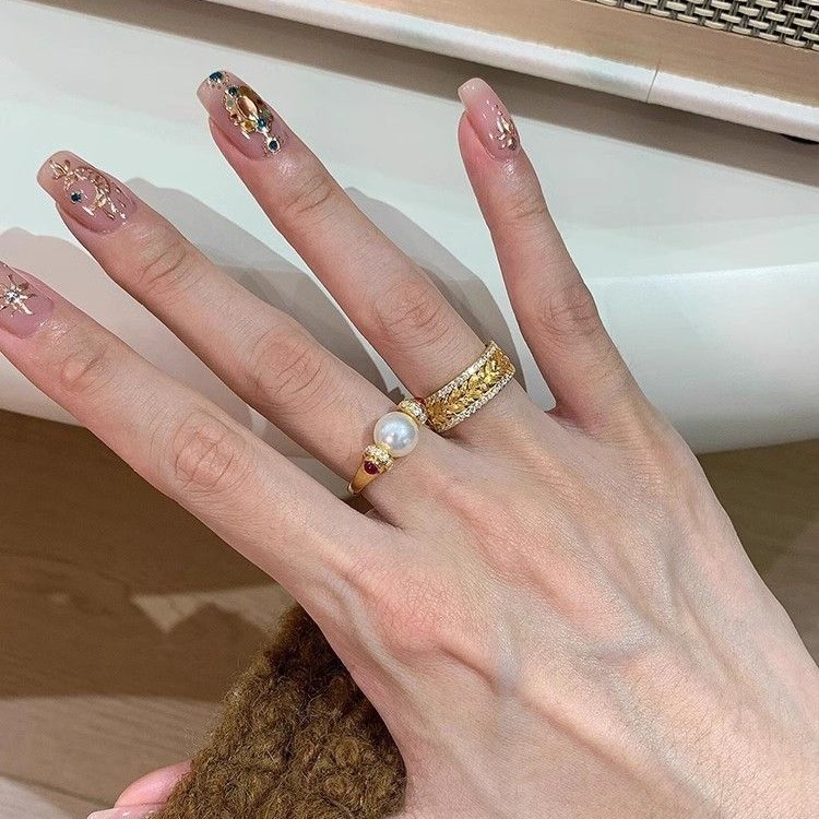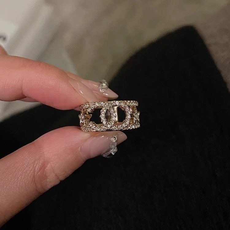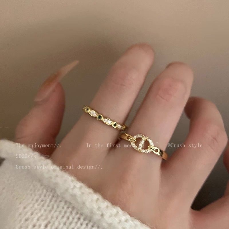 有迹ミルキーウェイ马蹄バックルu型二重フルドリルリング指轮インスタ风高级韩国小众オープンフィンガーリング女