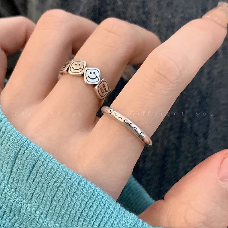 Good luck ~ レトロな古い四角の笑顔の星の指輪の女性の冷たい風の個性の開口部は指輪を調節することができます。