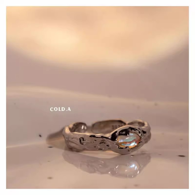 ティンダール効果コールドスタイルムーンストーンシルバーリング女性ニッチデザインユニークな自己規律テールリング男性小指個性