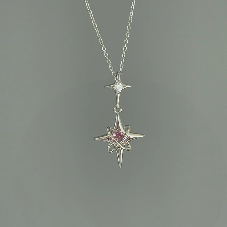 「biu boom」中古シルバー四芒星ネックレスコールドスタイルニッチレトロデザイン超光沢のある鎖骨チェーン