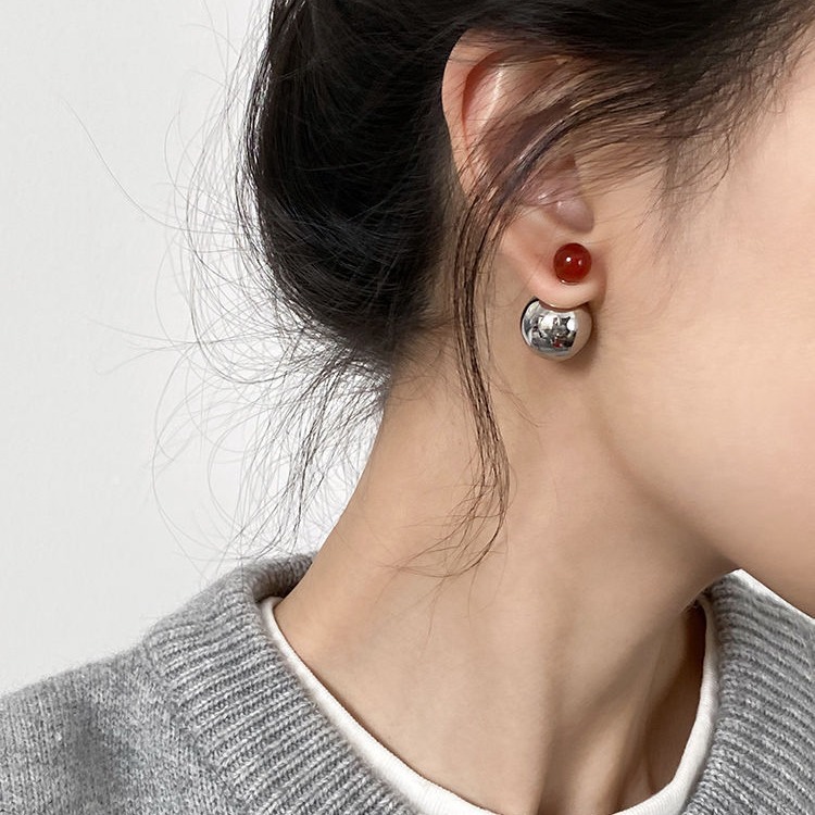 ヒュードーstoreの大衆の個性の前後の2つは式のワインの赤いビーズの金属のボールのイヤリングの女性の耳飾りをつけます。
