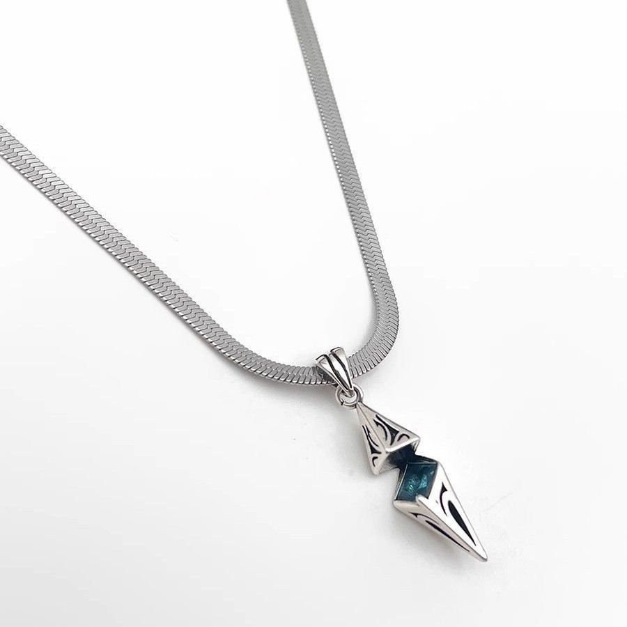 スターバースト シーブルー ジルコン 鎖骨チェーン メンズ ニッチデザイン ライト ラグジュアリー ハンサム クール ハイエンド ペンダント トレンド