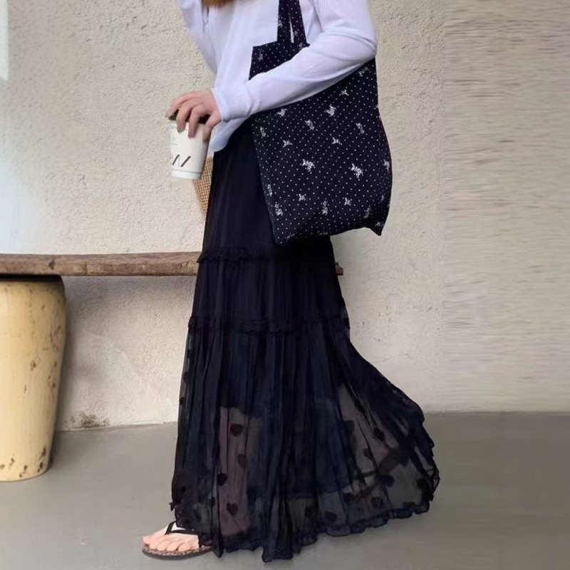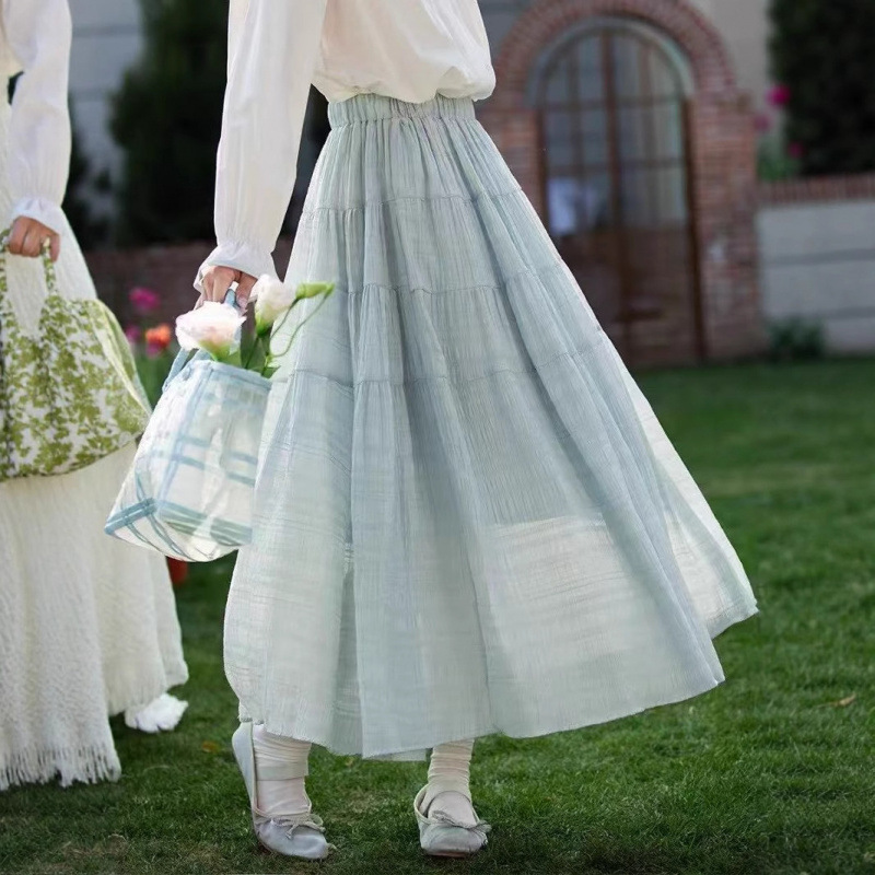 フレンチスタイルブルータイダルアンブレラスカート女性のための2025夏の新しいデザイン年齢を減らし、スリムに見えるロングスカート
