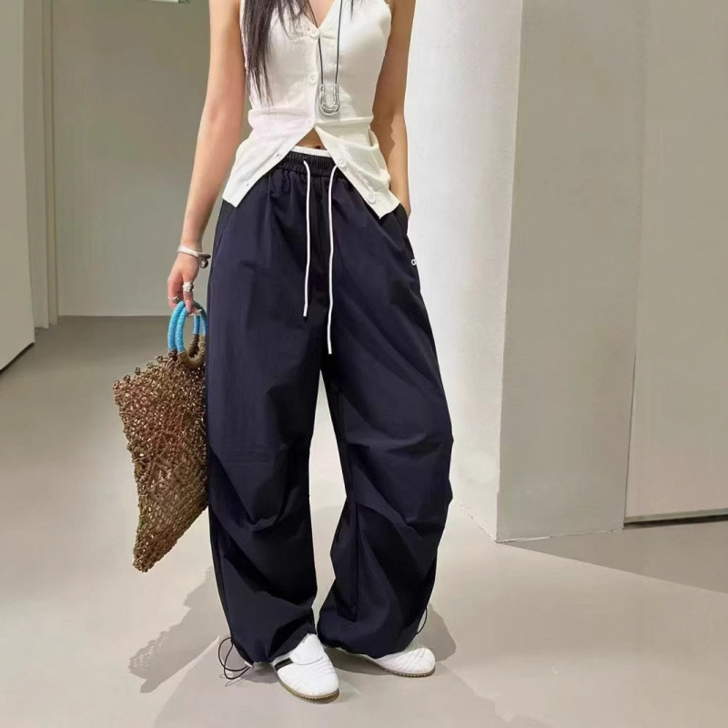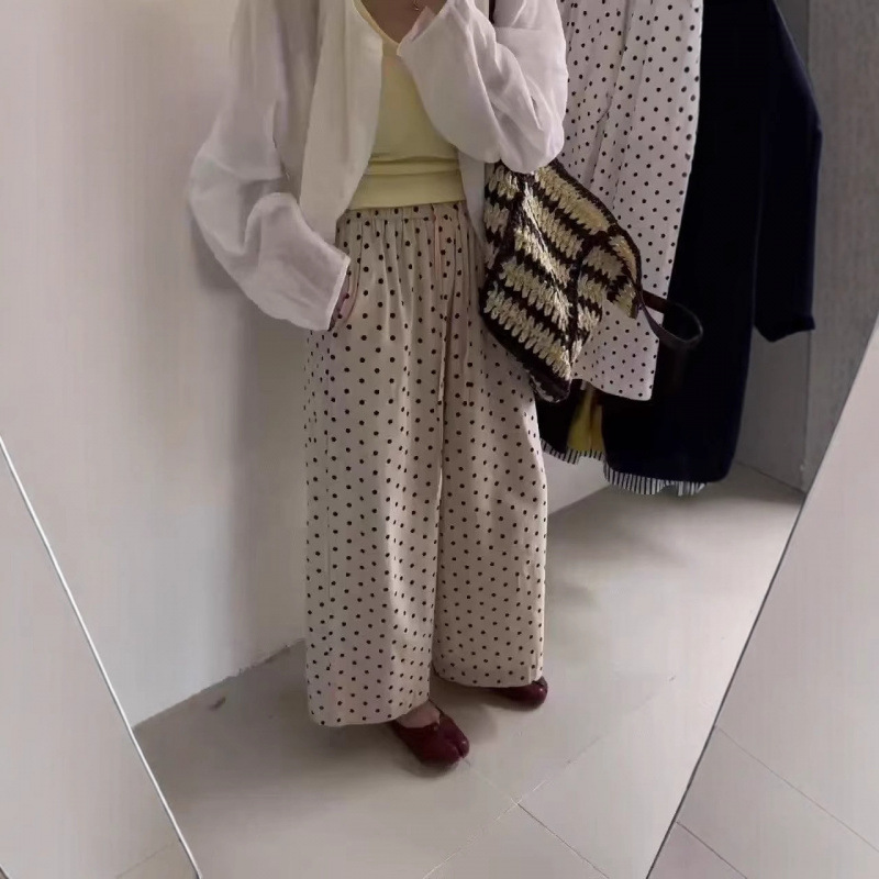 韓国スタイルの弾性ウエスト水玉模様の女性のためのルーズワイドレッグパンツ 2025 夏の新しいデザインニッチファッション多用途パンツ