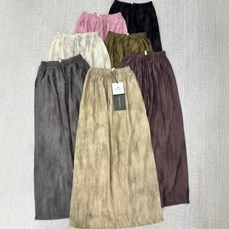 女性のためのタイダイワイドレッグパンツ 2025 夏の新しい薄いハイウエストルーズドレープレイジースタイルストレートカジュアルフロアレングスパンツ