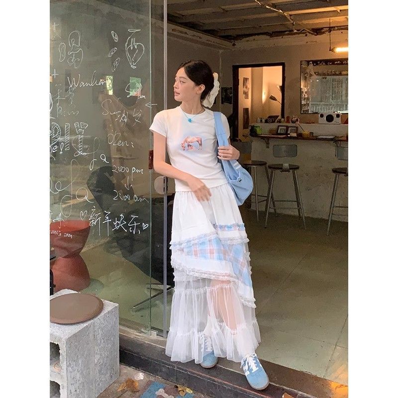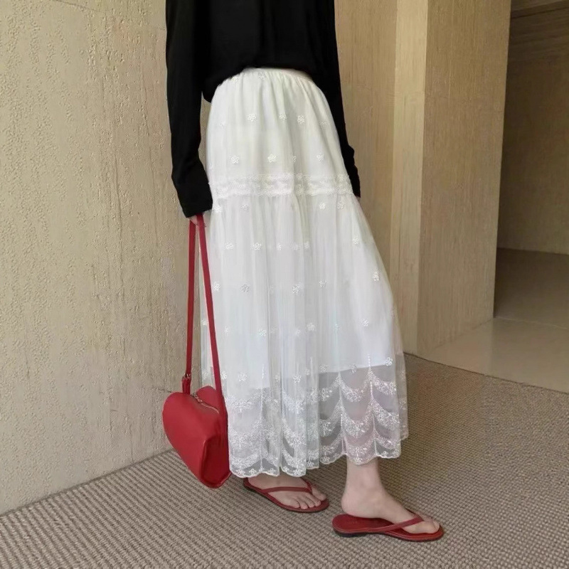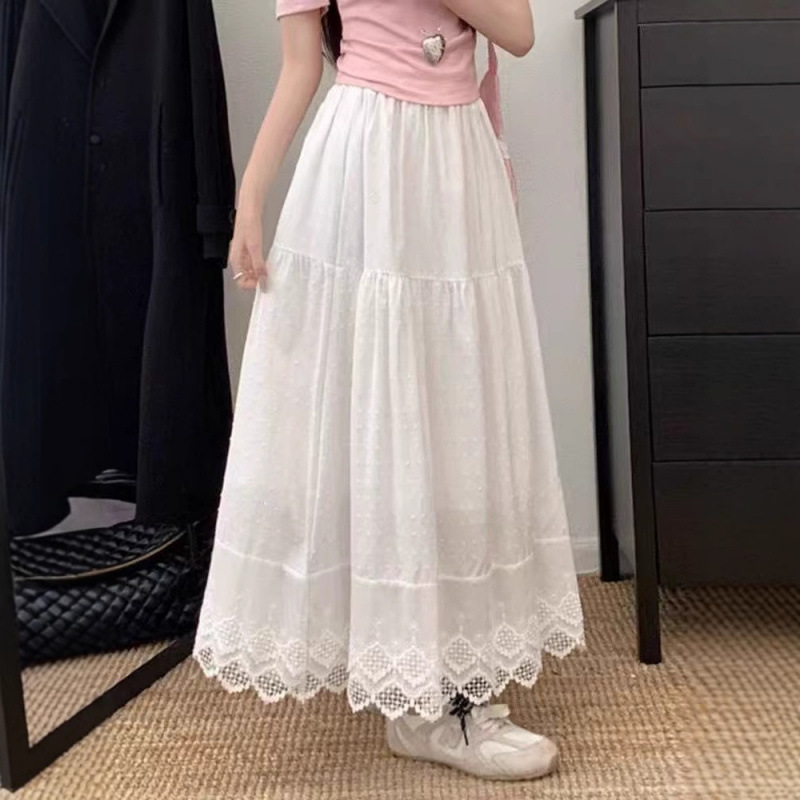 優しい風肌感レーススカート2025夏の新型高腰が痩せているA字ロングスカート女