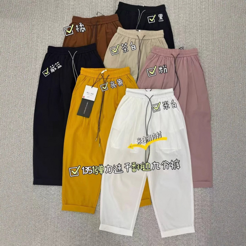 女性用伸縮性ハイウエストカフス速乾カジュアルパンツヨーロッパ製品2025夏のファッションルーズで多用途なキャロットパンツハーレムパンツ