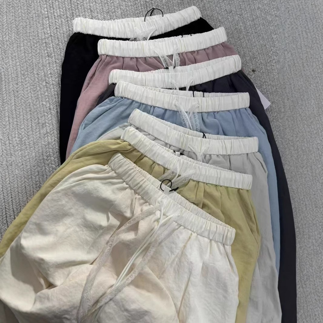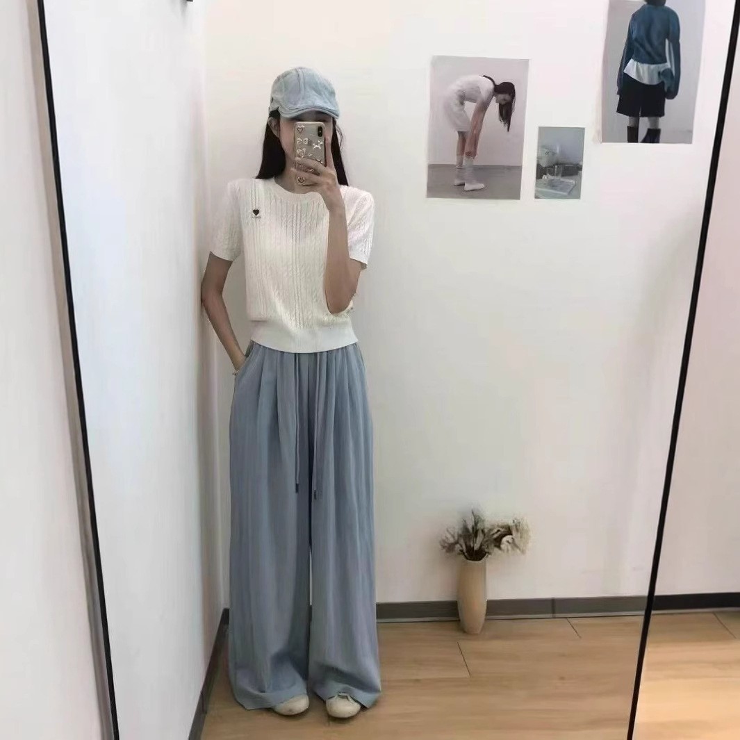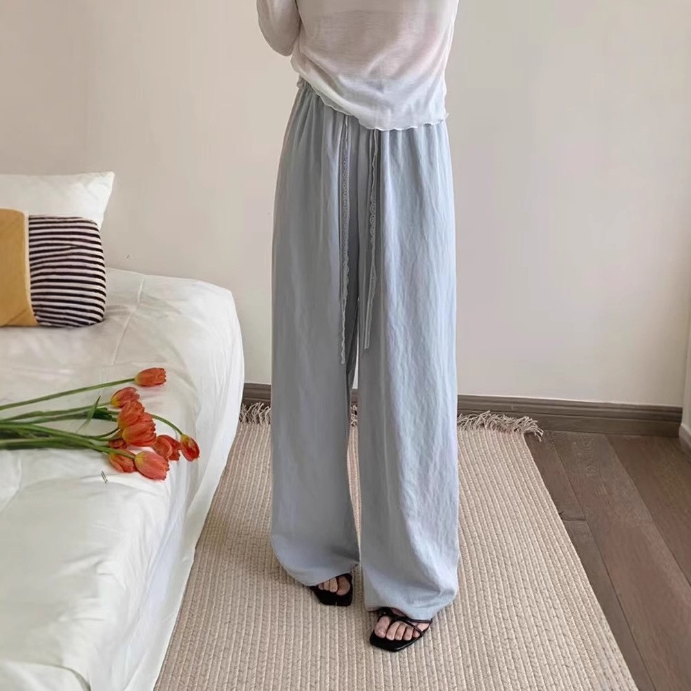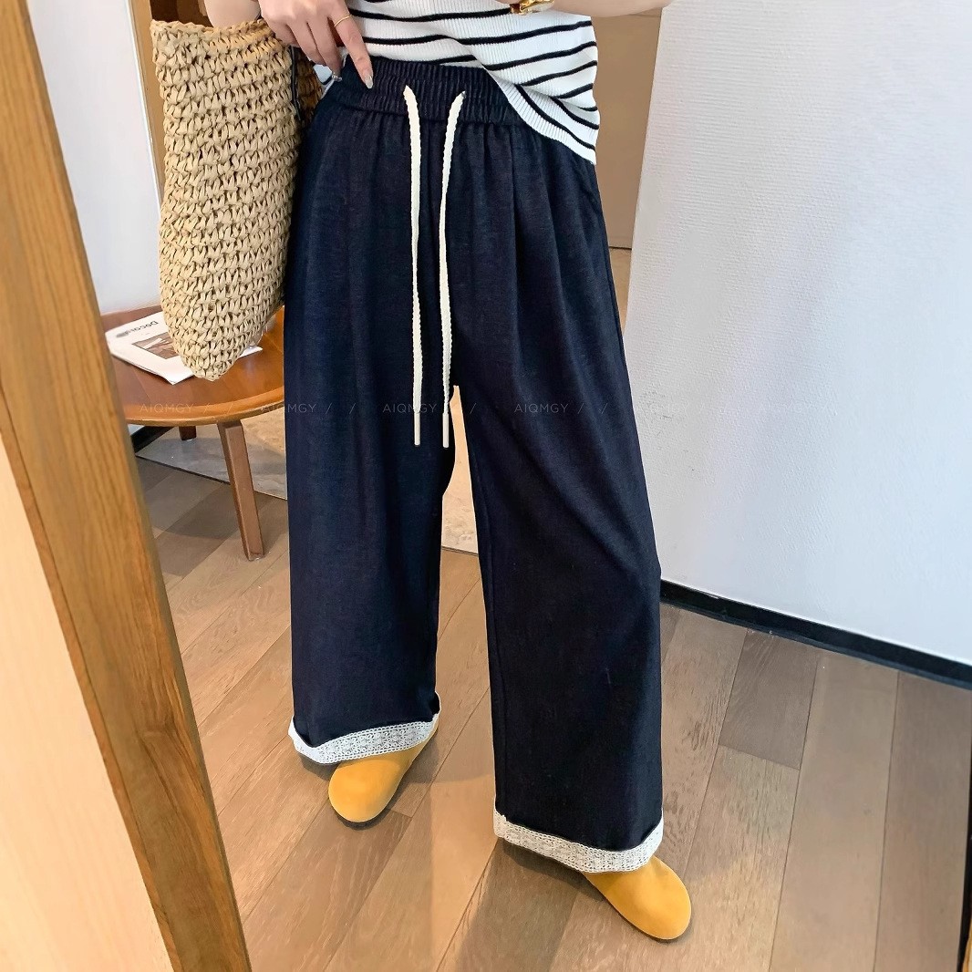 甘いレトロなファッションは、女性2025春の新しいゆるい純色が痩せているカジュアルパンツの女性を示しています