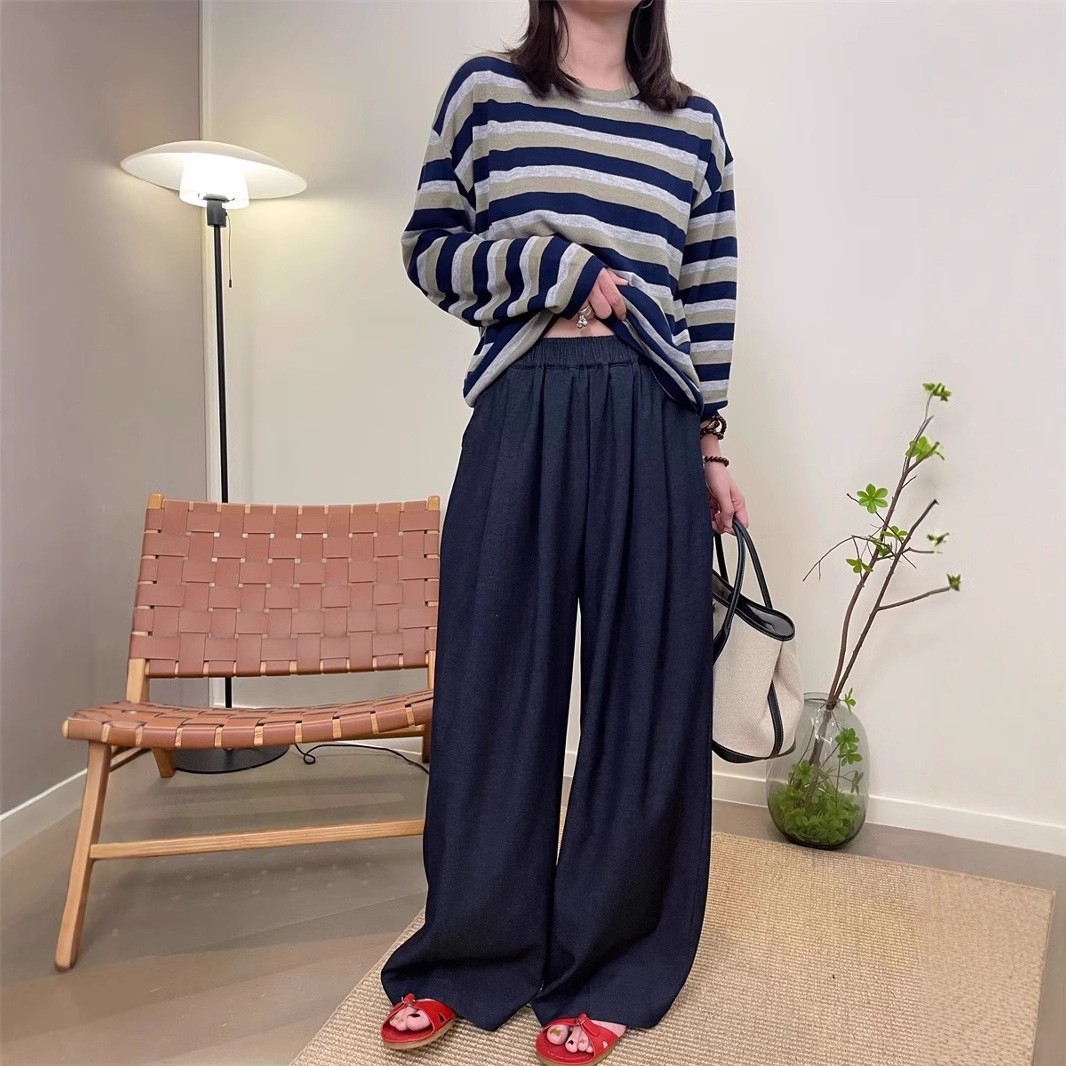 フレンチレトロデザイン2025春新作イミテーションデニム薄手ウエストゴムシルエットカジュアルフロアレングスストレートパンツ