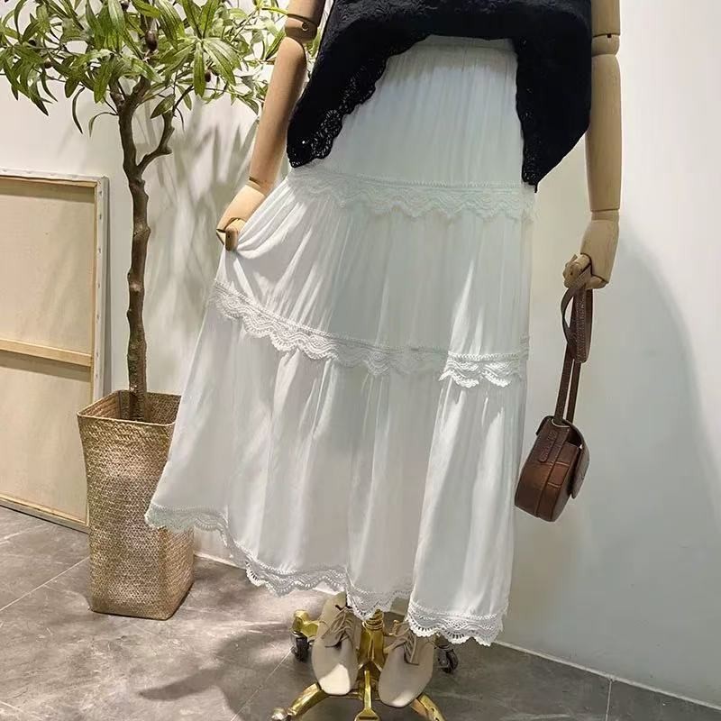 優しい風レーススカート女性夏ハイウエストA字ミディアムロングスカート