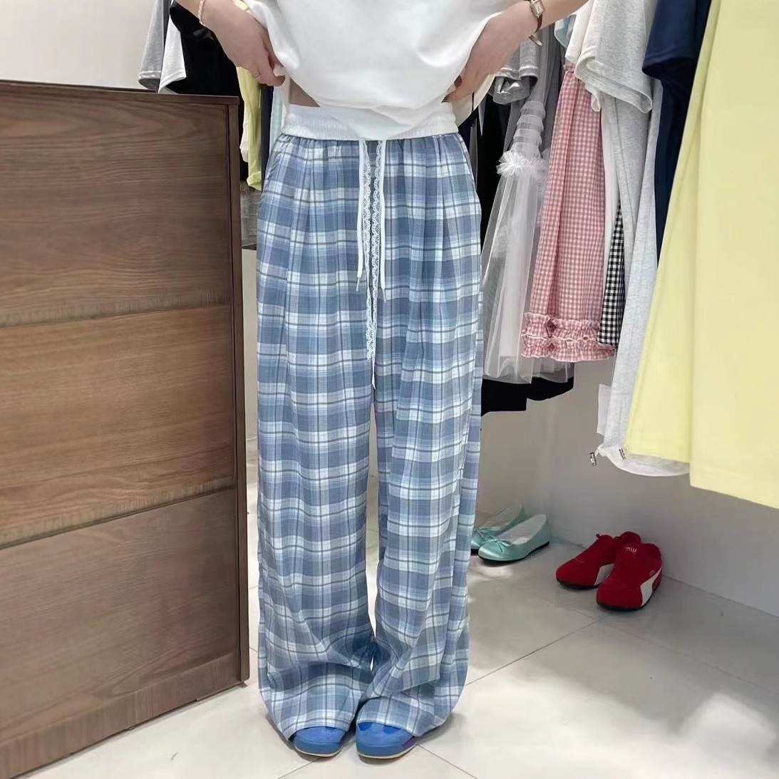 レイジースタイルパッチワークカジュアルパンツ女性のための 2025 春の新作ハイウエストルーズレース巾着ワイドレッグパンツズボン