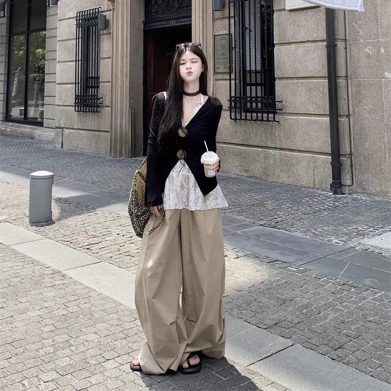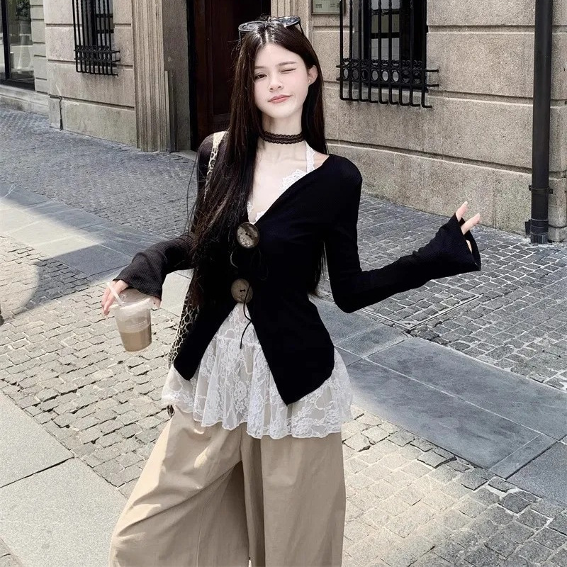 ギャルカジュアルセットレースキャミソール長袖ニットカーディガン女装2024早秋甜美風2点セット