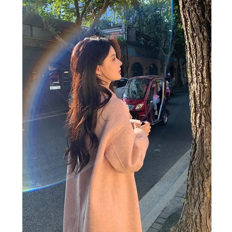 小香風毛ですね。コートの女性服の冬の2024の新型ダブルボタンのロングタイプの厚手の雰囲気の長袖ラシャコートです。