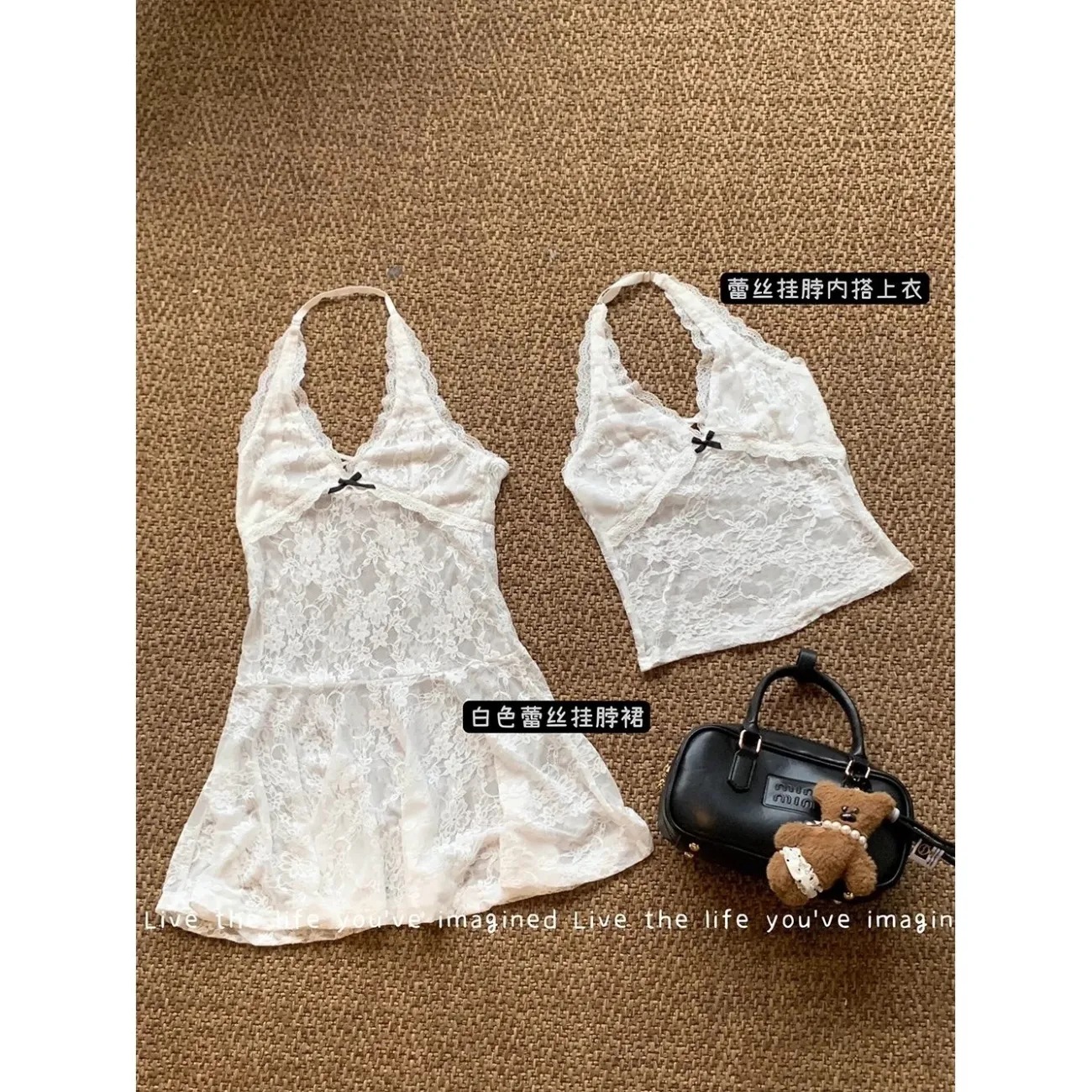フランスの白いレースの首のサスペンダーのワンピースの女性の夏は重ねて腰の中のスカートのセクシーな底のスカートを収めます。