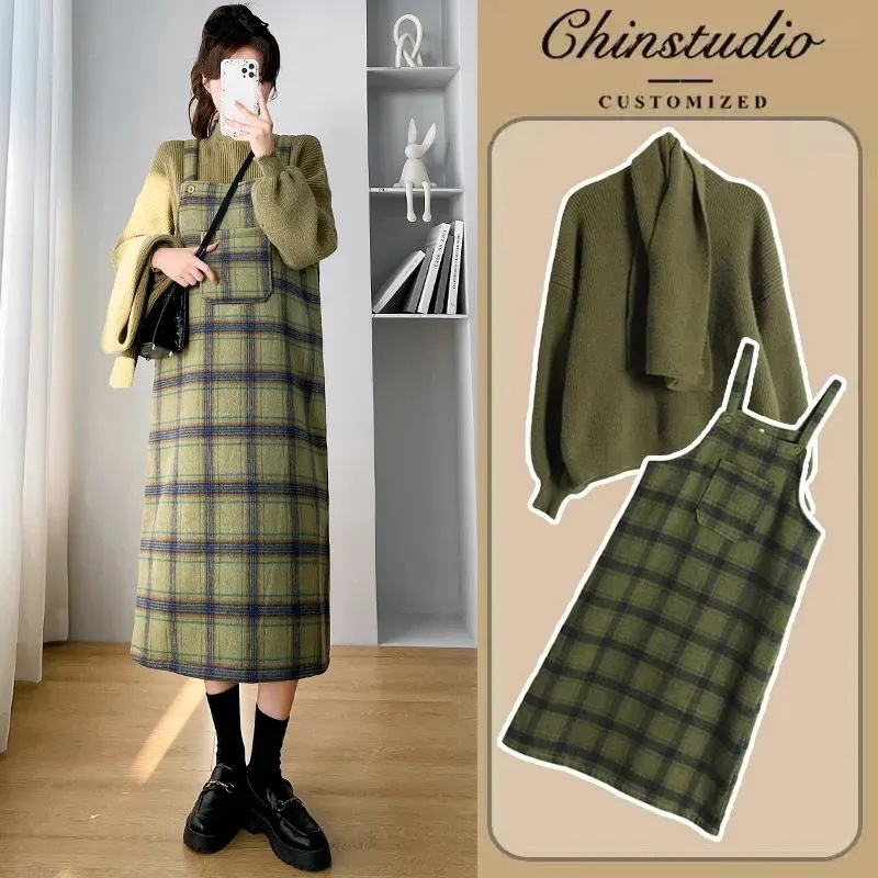 マタニティドレススーツ女性の早春 2025 新しい怠惰なスタイルボトリングシャツセーター腹カバーサスペンダースカート 2 点セット