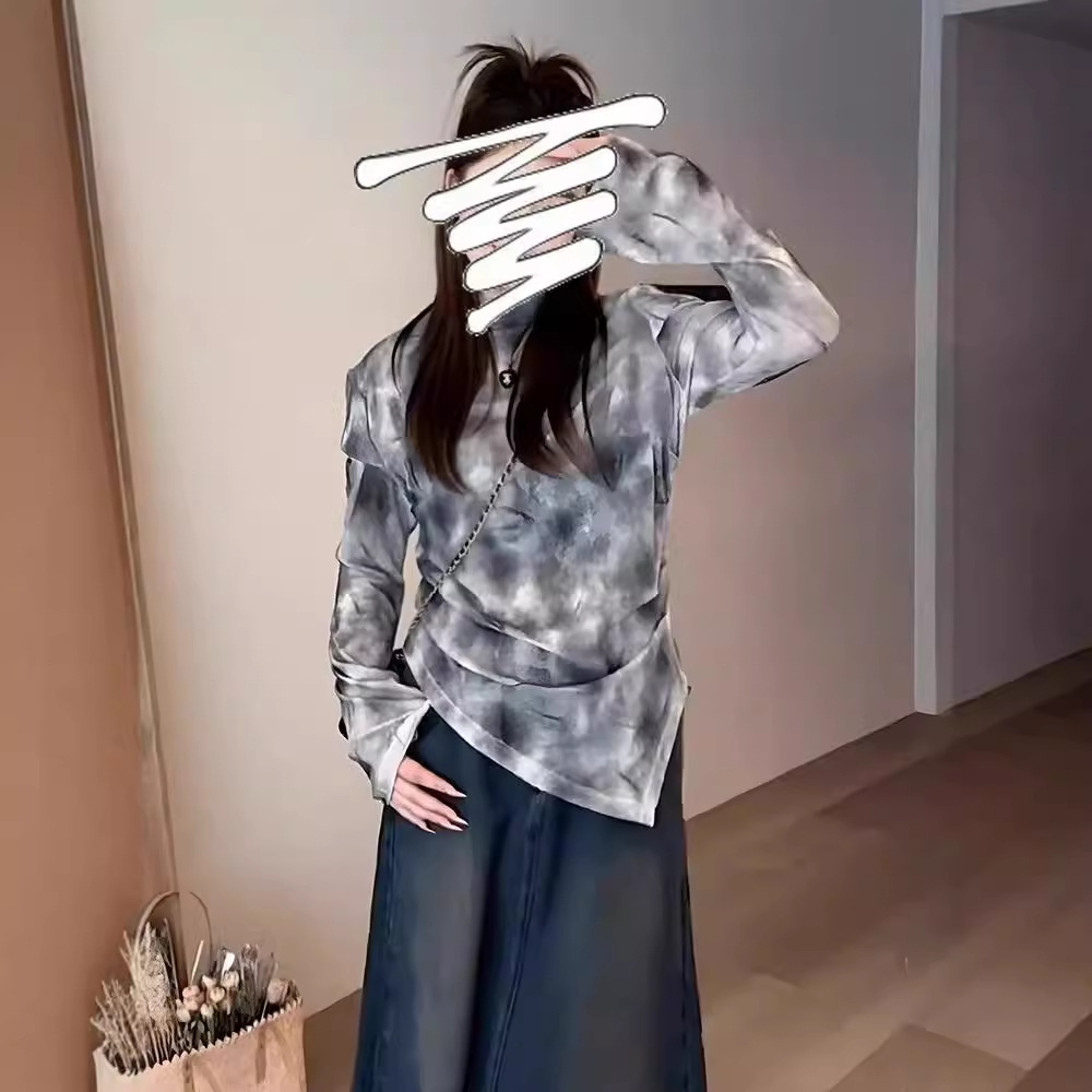 不規則な長袖tシャツの女性2024年の新しい秋の大きいサイズの太ったmmの透かし彫りは腰を収めてやせている純粋な欲の上着を現します。
