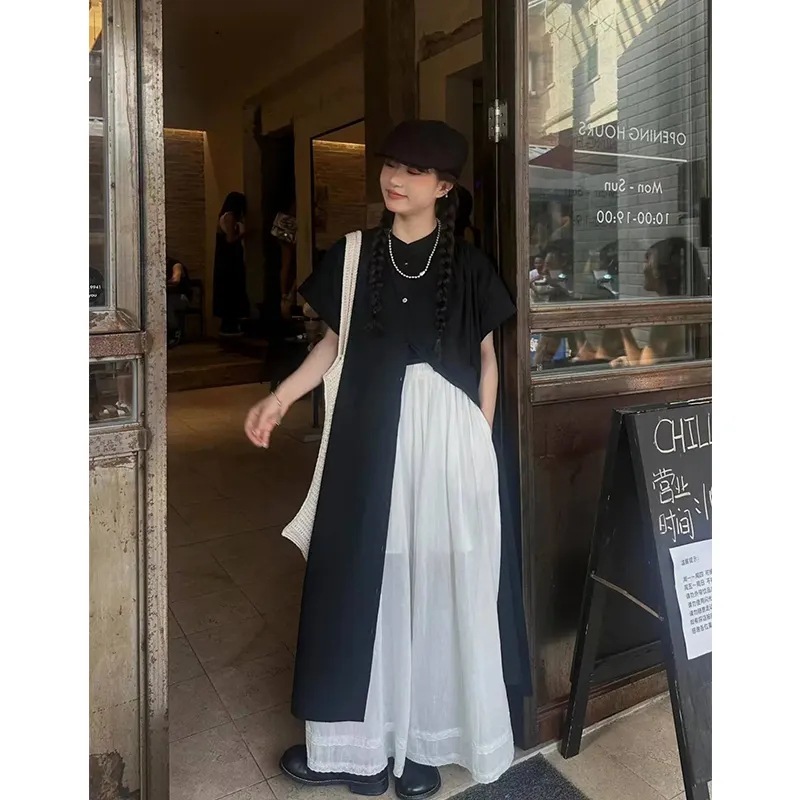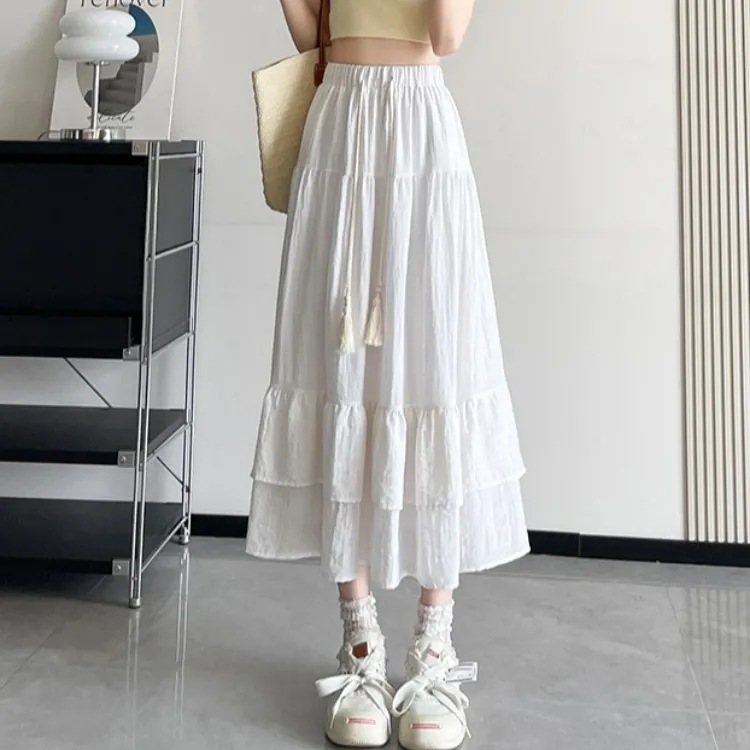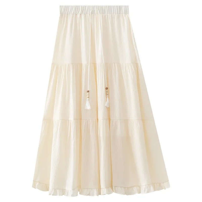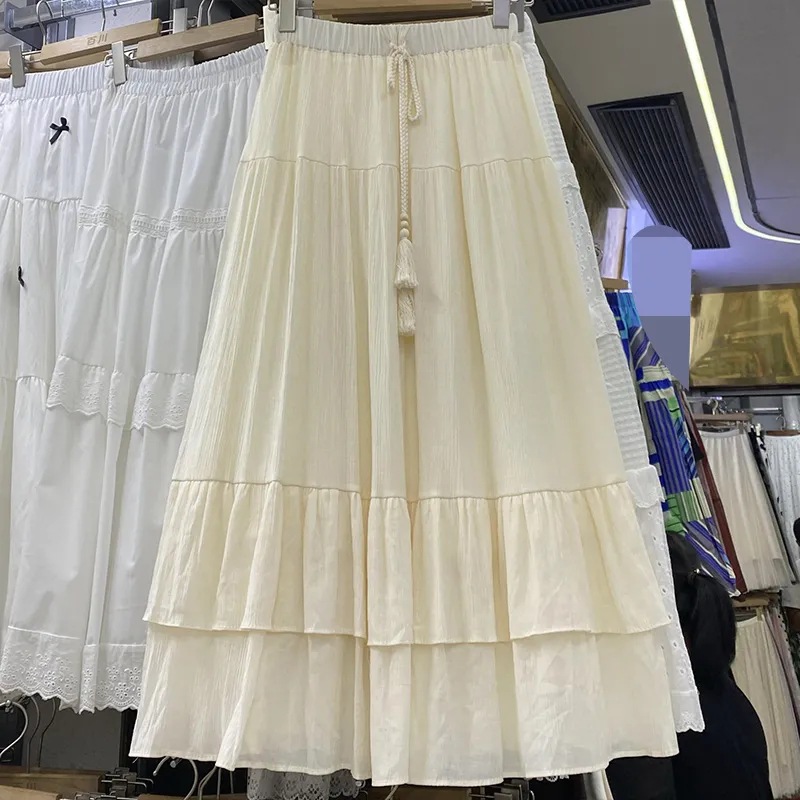2024新型文芸復古系スカート女性夏のミディアムケーキスカート女性a字大ロングスカート