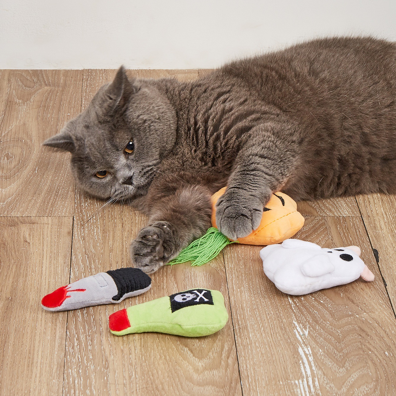 ハロウィーンのペットのおもちゃの漫画のおかしいスタイルは猫の草の猫の歯ぎしりを含んでいます。