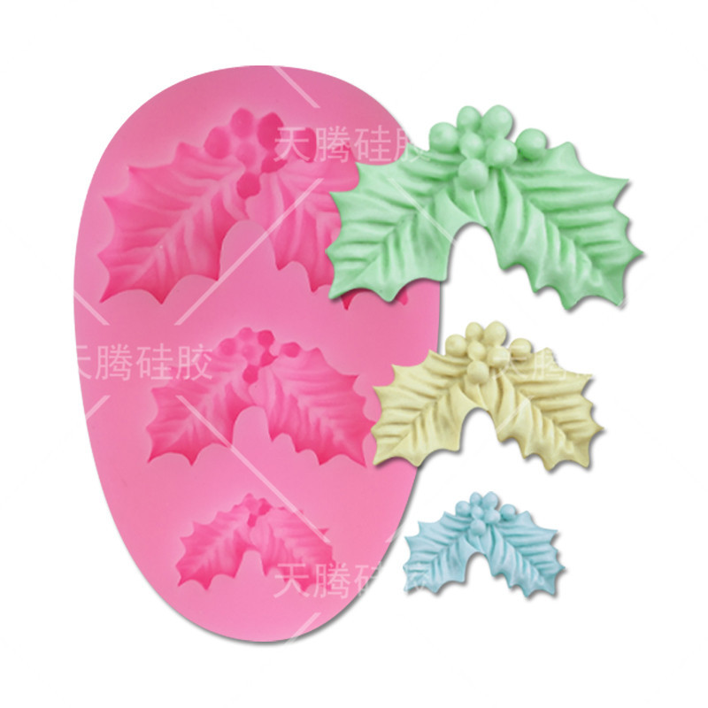 Diyクリスマス装飾赤果葉シリコン金型手作り砂糖ケーキ金型砂糖ツールケーキ金型
