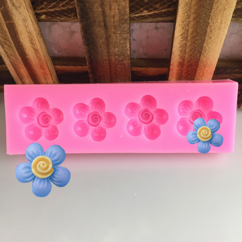Diy小巻花スパイラル巻き花4連5弁ボタン花シリコン金型手作り砂糖ケーキ型焙煎ツール