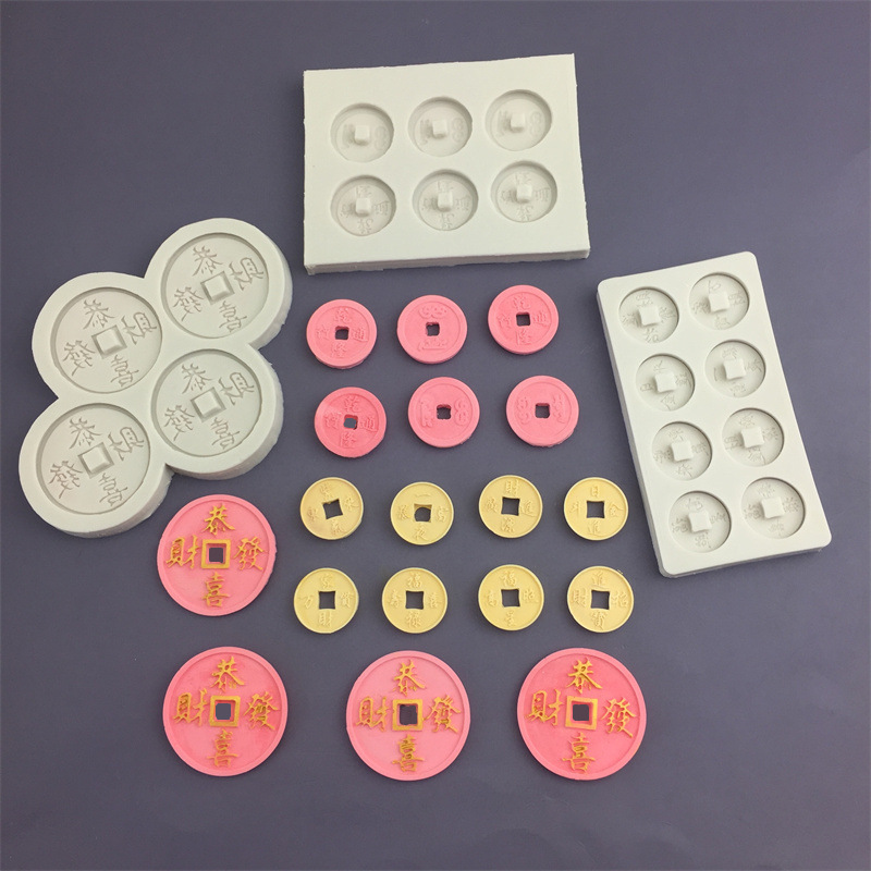 レトロな銅銭の形のシリカゲルの鋳型の石膏の滴のゴムの型はおめでとうございます。