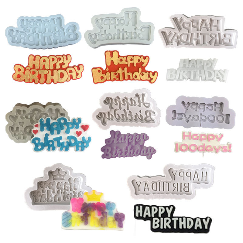 DIY ハッピーバースデーハッピーバースデーシリコンモールド手作りフォンダンケーキモールドフォンダンデコレーションモールド