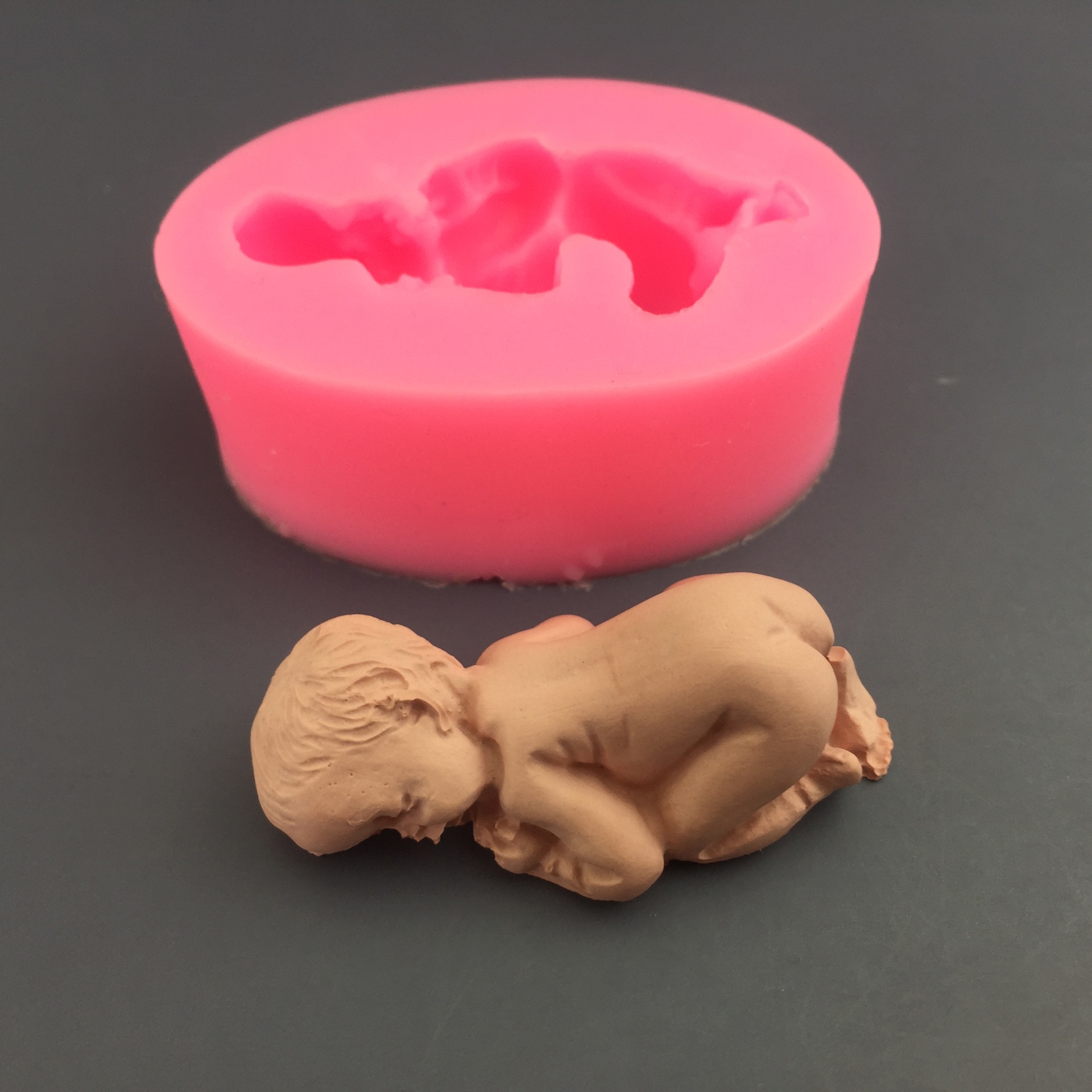 熟睡男の子の赤ちゃんの形のシリカゲルの鋳型の手作りの砂糖のケーキの型をひっくり返します。