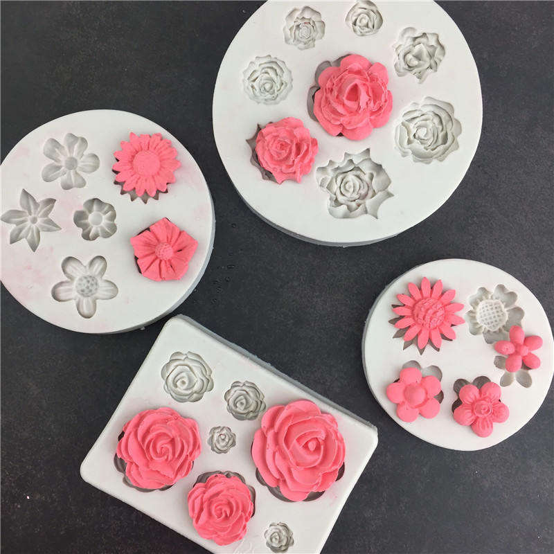 Diy 4種類の花の小さい花の太陽の花の形のシリコンの型は砂糖のケーキの型をひっくり返して砂糖のツールのケーキをひっくり返します。