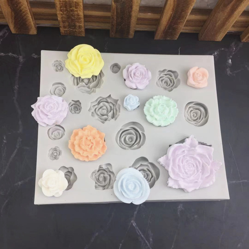バラの花シリーズの大きさのバラの花のシリコンの金型diy装飾のチョコレートの立体は砂糖のケーキのビスケットをひっくり返します。