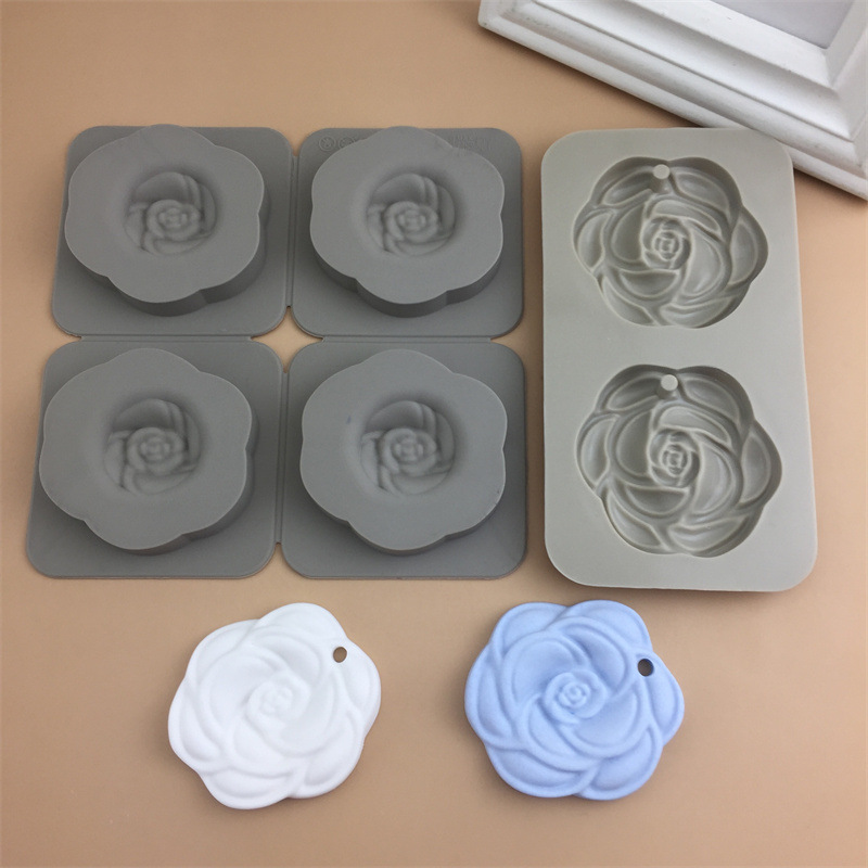 2ツバキの花の形の看板のシリカゲルの鋳型の石膏のアロマワックスの鋳型のdiyチョコレートの手作りの石鹸の鋳型