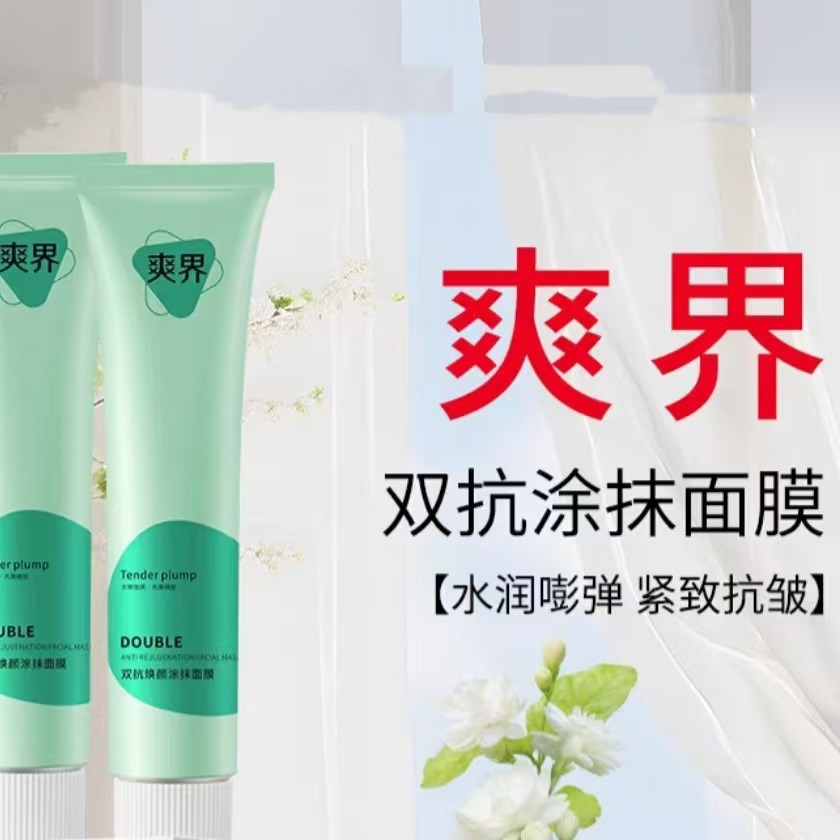 Shuangjie ダブルアンチスミアマスク、美白、抗酸化、砂糖、保湿、引き締め、しわ防止、保湿、夜更かしダークイエロー生成 + V