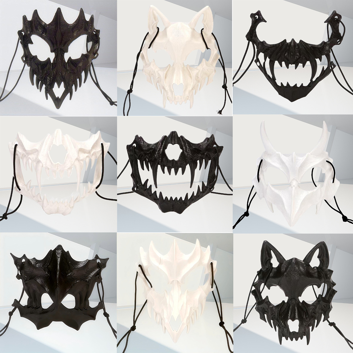 二次元ハーフフェイスマスクハロウィンダンスコスドレスアップ小道具龍神虎夜叉天狗人狼マスク