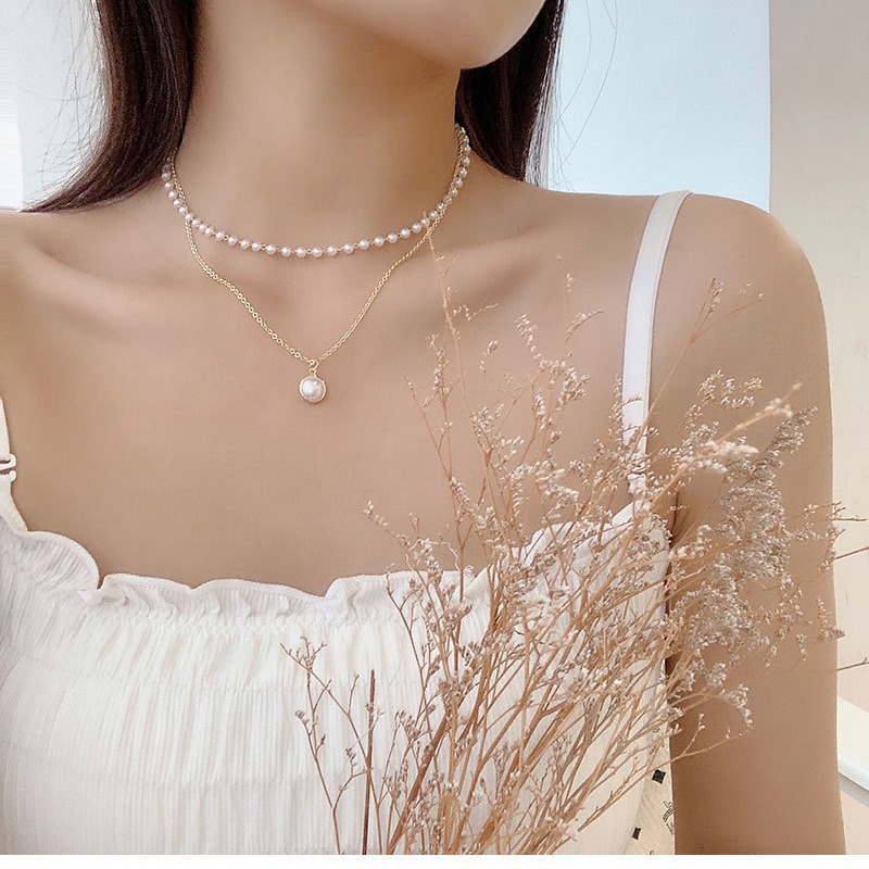 春夏のファッショナブルでシンプルなネックレス、個性的なニッチデザイン、二層パールネックレス、レディーススイート鎖骨チェーン、ショートスタイル