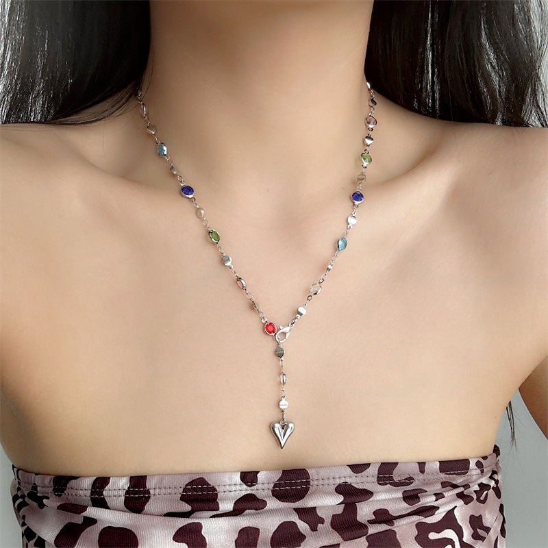 ラブY字型ネックレス、ヨーロッパとアメリカの国境を越えた新しいデザイン、コントラストカラーのスプライシングラブペンダントネックレス、ファッショナブルで多用途