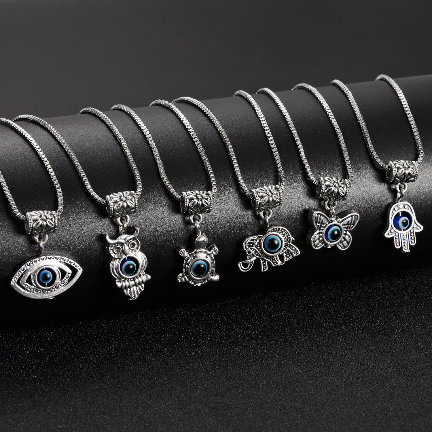 メーカー直販新型ファッション手のひら蝶透かし彫り青い目動物ペンダント箱チェーン鎖鎖鎖ネックレス女