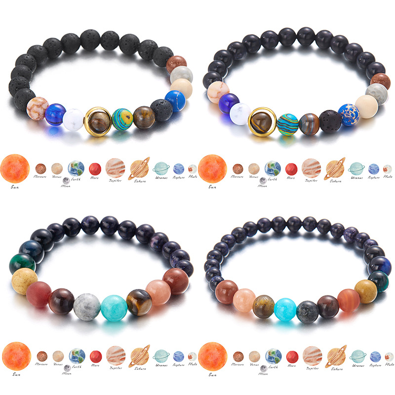アマゾン爆金新商品太陽系天然石火山石星ブレスレットファッション宇宙弾力多宝手串