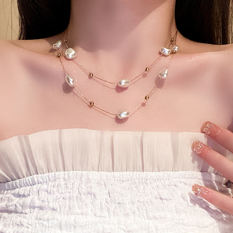 夏の新しいスタイルのライトラグジュアリーハイエンドターコイズスパンコールディスクタッセル鎖骨チェーン女性用ダイヤモンドスタッキングスタイル特殊形状パール