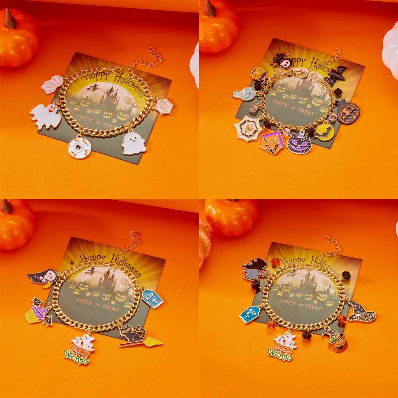 クロスボーダー新しいハロウィンパーティーブレスレットセット城カボチャゴースト猫帽子かわいい面白いブレスレット女性用