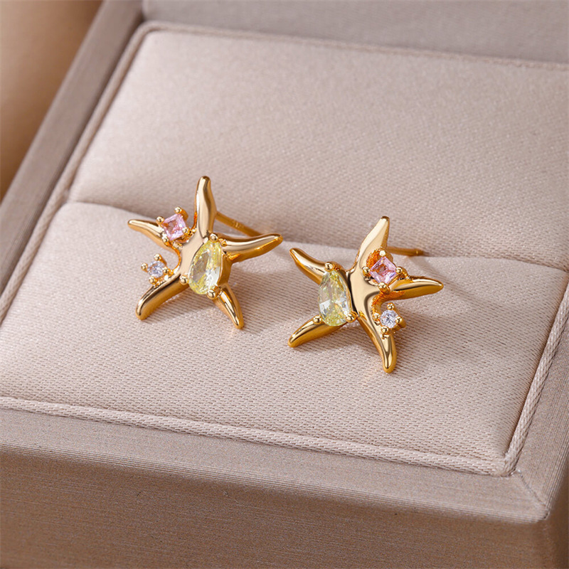 日本と韓国の国境を越えた新しい夏のスタイルのシンプルなヒトデジルコンイヤリング、軽くて豪華でファッショナブルで多用途なデザインの女性用イヤリング