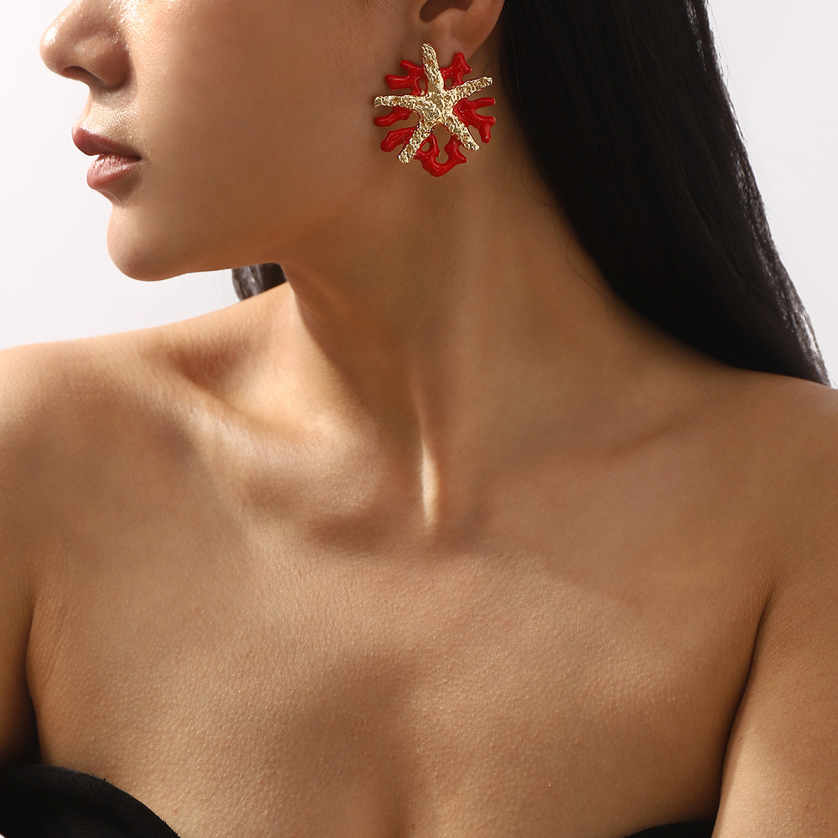ヨーロッパとアメリカのクロスボーダー夏の新しいオーシャンリゾートスタイルヒトデサンゴイヤリングレトロデザインイヤリング女性用
