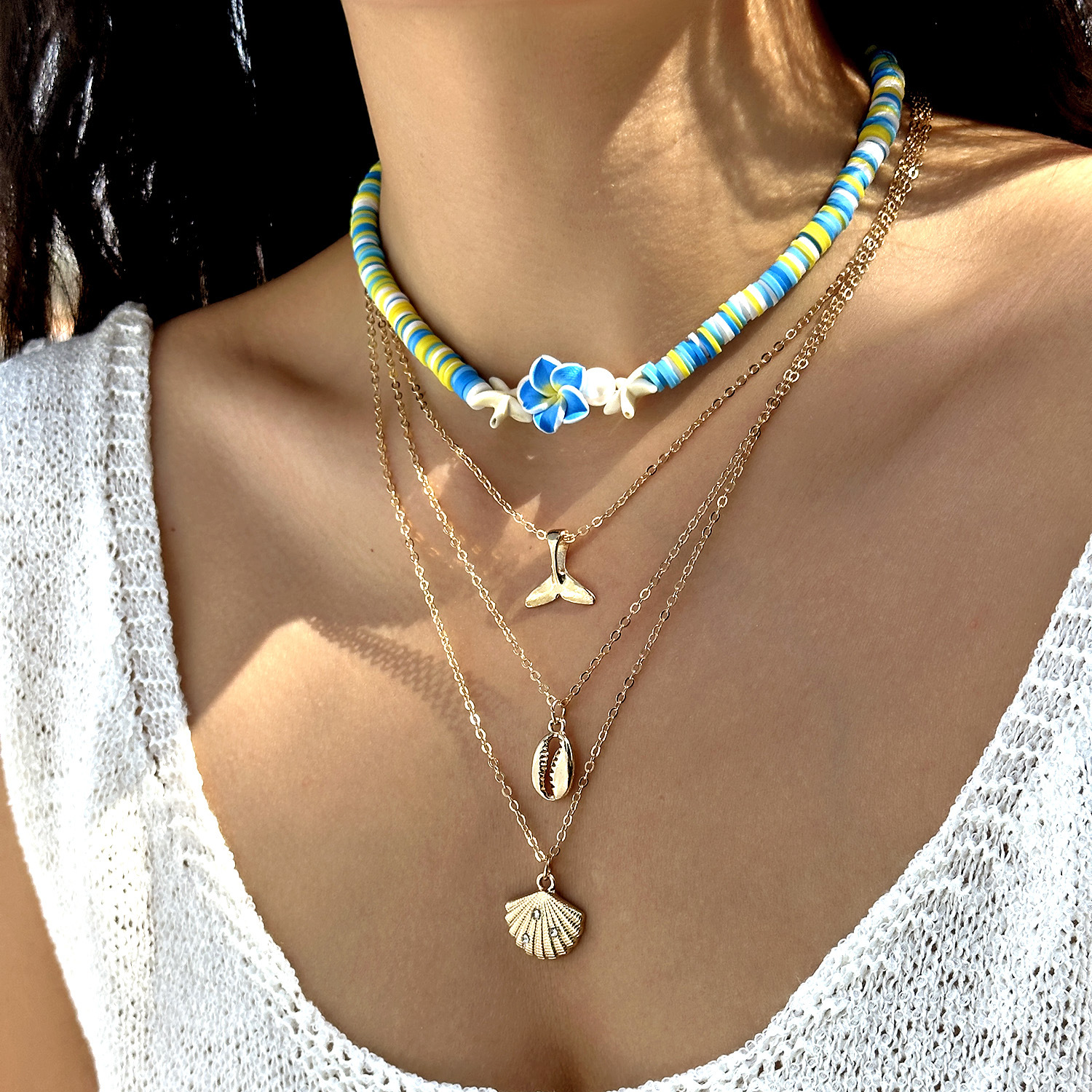 欧米の海洋の風のボヘミアンの柔らかい陶の卵の花のカメの貝殻のココナッツの木のネックレスのセットのビーチの装飾の女性