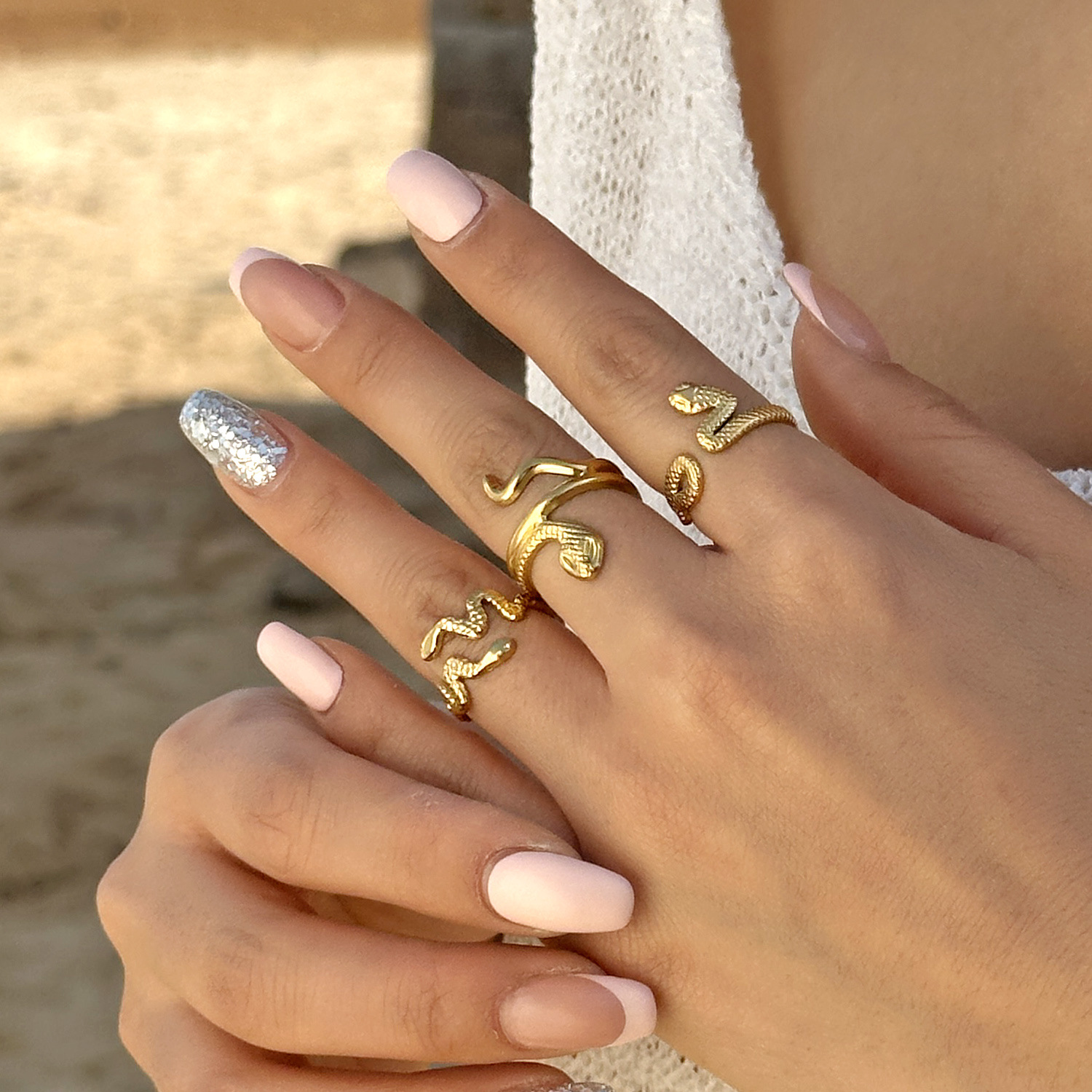 チタン鋼の指輪の女性ステンレスの蛇の年の生肖は指輪の女性の大衆の高級な軽豪華なレトロな口の指輪を調節することができます。