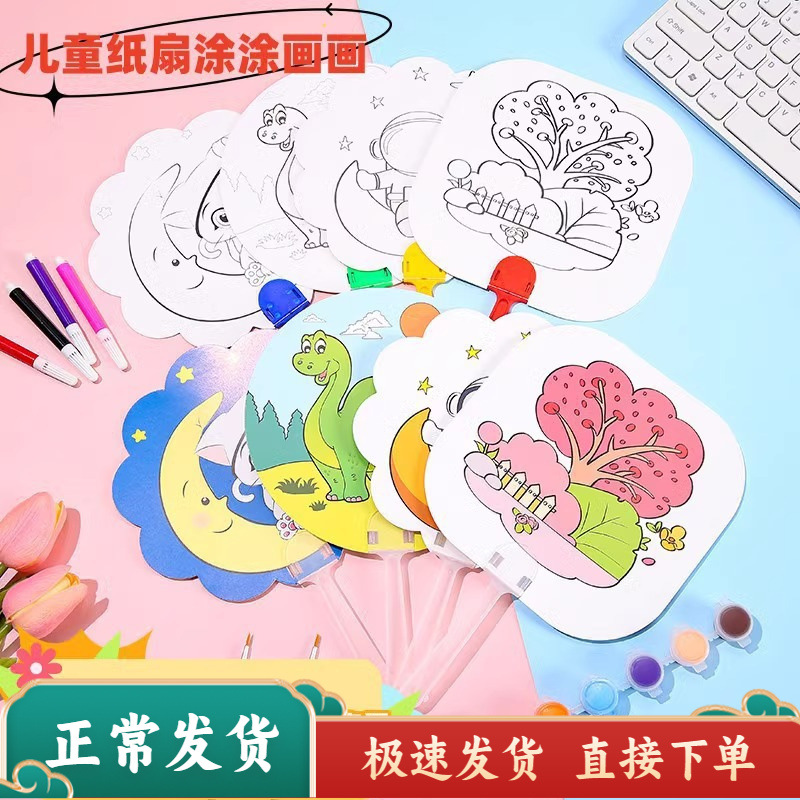DIY空白の紙扇子の漫画の彩色は色を塗って絵の図案の白い紙の線の扇子の夏の贈り物を塗ります。