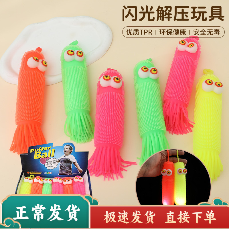 夜市のキラキラ光る露店の子供のおもちゃの卸売りの突目のタコの毛虫の電子の漫画は毛のボールを発散します。