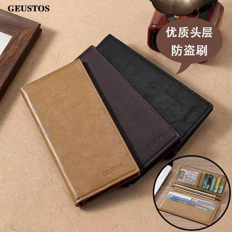財布の長い革の質感の超薄大容量の盗難防止ブラシの新しいシンプルなレトロな財布