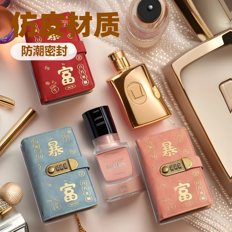暴富暗号鍵現金貯金本現金収納袋大容量貯金ネット赤資産管理収納帳