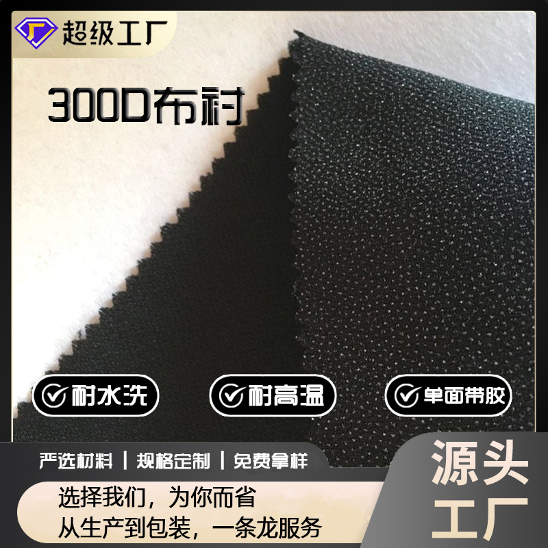 メーカー直販厚手布ライニング300d黒色有紡布ライニング服装粘着ライニング布1.5メートル幅ホットライニング